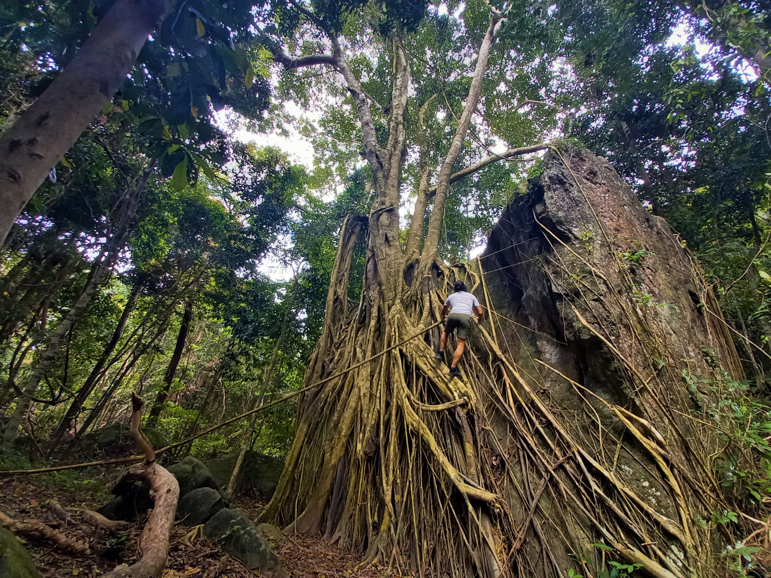 Start the journey to conquer Tien Son Peak, venturing deep into nature along complex trails with steep slopes, rapids, and numerous rocky sections. Witness lush flora along the mountain paths and discover remarkable forest trees such as durian, star apple, a 130-year-old jackfruit, and a unique large banyan tree. Encounter unique forest wildlife along the way, from curious animals to fascinating snakes and insects.